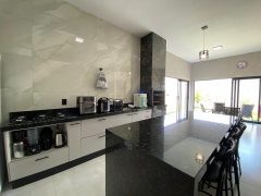 •Cozinha moderna com churrasqueira e móveis planejados